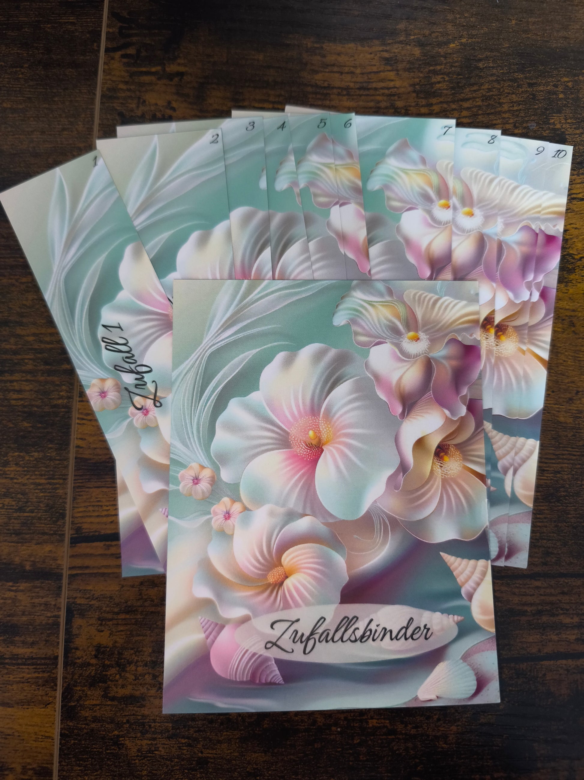 Ich habe euch ein A7 Zufallsregister in zwei Designs im Angebot. Das Trennblatt ist mit Zufallsbinder beschriftet. Es gibt diese in einem rosa Design und in einem grünlichen Design. Sie sind beidseitig bedruckt und gibt es nur aus der Druckerei