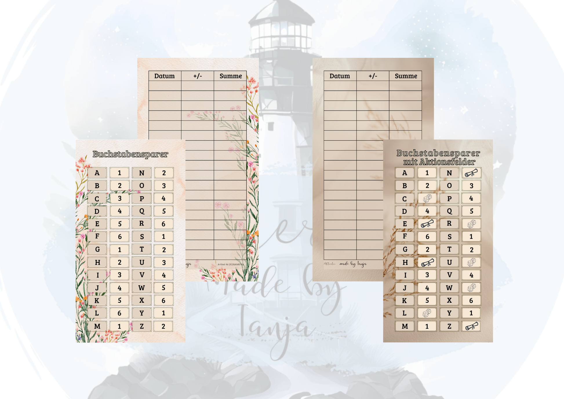 Das liebevoll gestaltete Design macht die Karten zu einem schönen Begleiter für deine Sparziele.