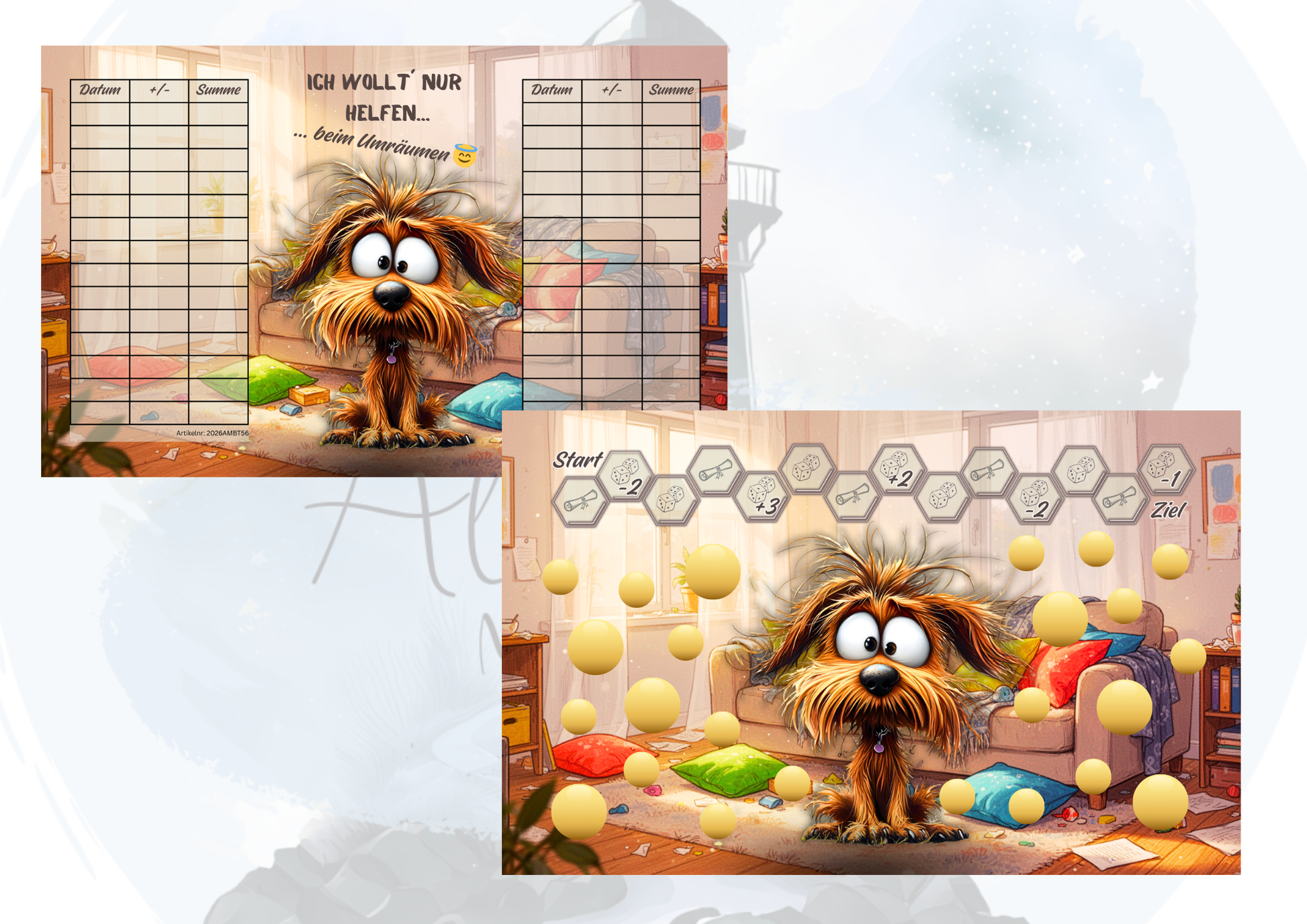 „Ich wollt´ nur helfen… beim Umräumen“ Sparchallenge – Sparspiel mit Rubbeln, Losen & Würfeln | Geld sparen Challenge bis 10€