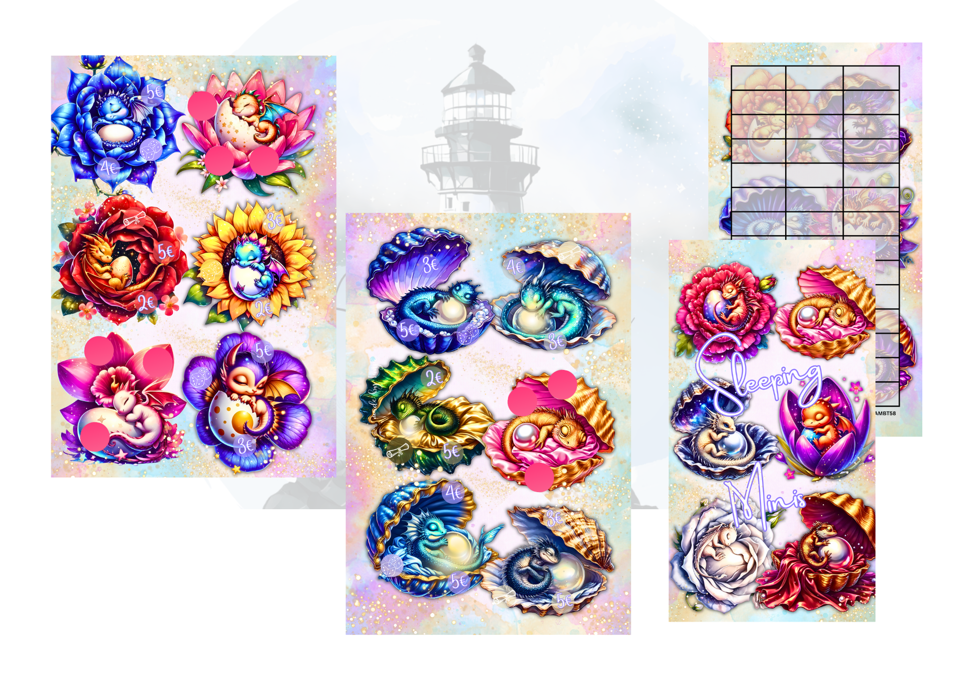 Mit der Sleeping Minis Sparchallenge wird Geld sparen zu einer kleinen magischen Reise. Die liebevoll gestalteten Motive zeigen niedliche, schlafende Drachen in Blumen und Muscheln, die deine Sparchallenge zu einem besonderen Hingucker machen.